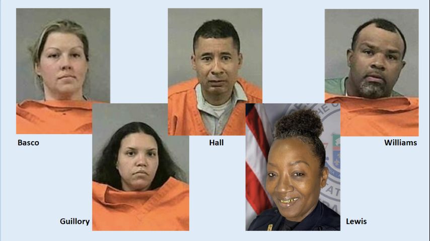 Those arrested were Mayor Ryan Williams, 40, police Sgt. Darrien Guillory, 33, and communications officer Chasessica Basco, 41, of Ville Platte; Mamou Police Chief Charles "Pat" Hall, 53; and Opelousas police officer Yolanda Lewis, 49.