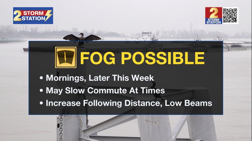 Up Next: The biggest shift will come toward the end of the week, and that will be a change in how the air feels. Our winds will start to shift from the east to the southeast on Thursday. This southerly component to the wind will slowly but surely drag up the humidity levels. In turn, enough moisture will be available for some patchy fog development on several mornings, especially Thursday through Saturday.